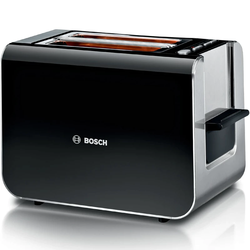توستر بوش مدل TAT8613 بسیار زیبا و کارآمد است زیرا که طراحی ویژه ای دارد. در این دستگاه دکمه ها در بالای دستگاه تعبیه شده اند تا کارکردن با آن هر چه آسان تر شود و تمامی افراد در تمامی سنین بتوانند دستگاه را مورد مصرف قرار دهند و از طرفی کودکانی که قد ِ کوتاهتری هم دارند از روی کنجکاوی دستگاه را روشن نکرده و خطری را متوجه خود نکنند. توستر بوش مدل TAT8613 دارای دو شیار قرارگیری نان دارد. پس از قرار گیری نان ها، از روی دکمه های لمسی و با کمک نشانگرهای نورانی روی دستگاه، میزان برشتگی تنظیم شده و دستگیره جلویی به پایین کشیده می شود تا عملیات برشته کردن نان آغاز شود. این دستگاه دارای قابلیت یخ زدایی نیز می باشد. همچنین قطع عملیات نیز توسط یک دکمه ممکن می باشد. با استفاده از پایه های فلزی می توان کلوچه و کیک های فانتزی هم گرم کرد. سینی جمع آوری خرده نان امکان خروج خرده ها را می دهد تا در استفاده های بعدی دود نکنند، نسوزند و بوی بد ایجاد نکنند. بدنه این توستر در حین فعالیت همواره خنک بوده و خطری ایجاد نمی کند. بوش از تولید کنندگان مطرح لوازم خانگی برقی است که در سراسر جهان موفقیت های زیادی کسب کرده است.